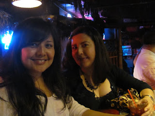 Thelma,Toni and myself headed over there around 8 pm and had a few 3.00 cocktails. They were not to bad until my second one where I was sipping the top of the glass and when I got down almost half way I was using my straw to mix up the ice and a piece of tortilla came floating up to the top..Blahh I swear if I did not have a buzz already I would have hurled! I just figured meh the booze will kill any bacteria it may have had on it ::GAG::I took this photos of the gals..Thelma has way better pictures on this night then I did.
